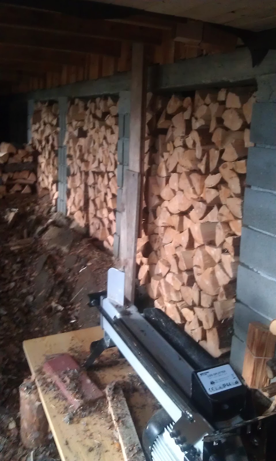 God trening når det ligger syv trær klare for å bli kløyvd. Påsken i år blir vel mest av dette og ikke så mye håndarbeide. Det er godt å få rørt litt på seg også, men det går hardt utover ryggen.